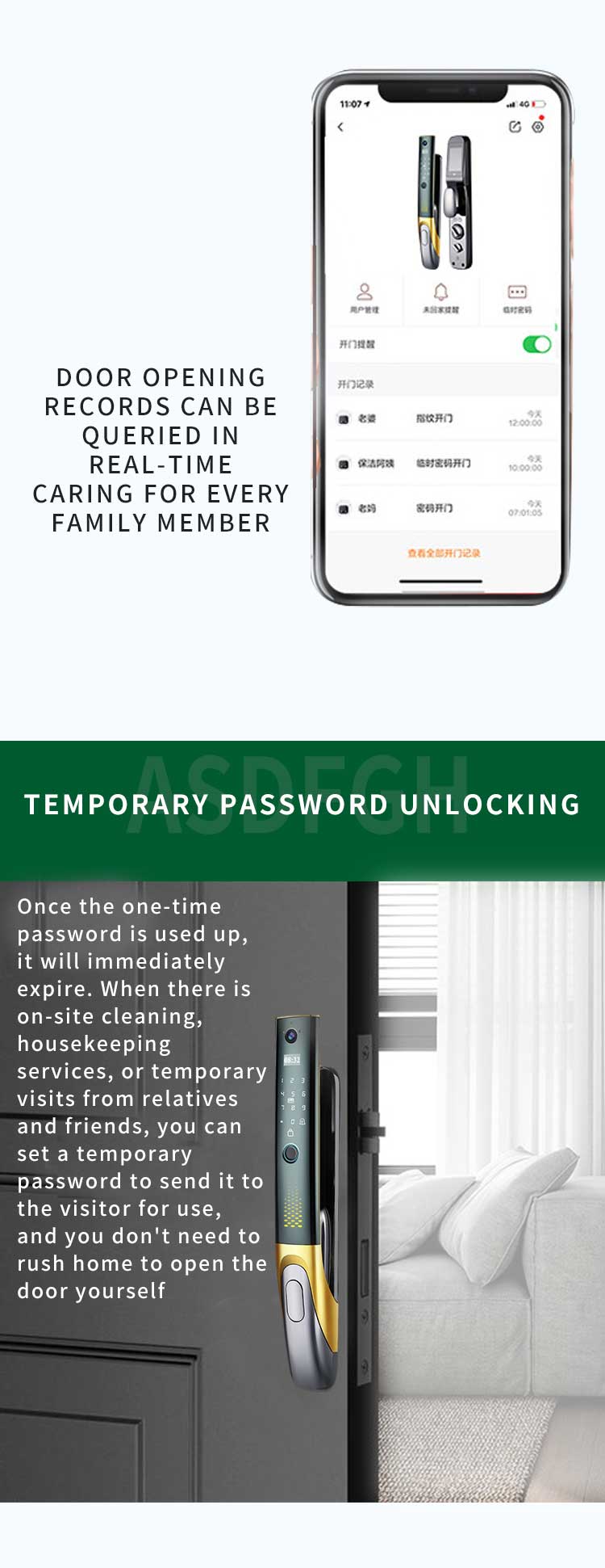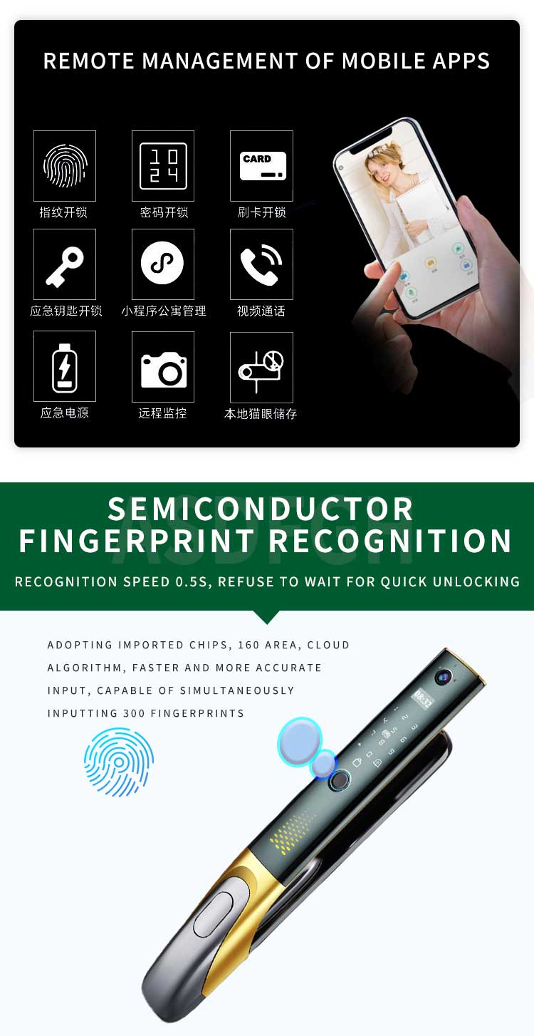 Wholesale and retail Fingerprint Door Lock in Sydney, Australia, with excellent quality and affordable prices.Product attributes:Video call remote intercomFully automatic intelligent door lockMobile app managemenVisible Cat Eve6 unlocking methodsPanoramic wide-anglehigh-definition cameraHigh definition video transmission Visual cat eye doorbellCat's Eye Visual Intercom,just press the dog ightly,an..