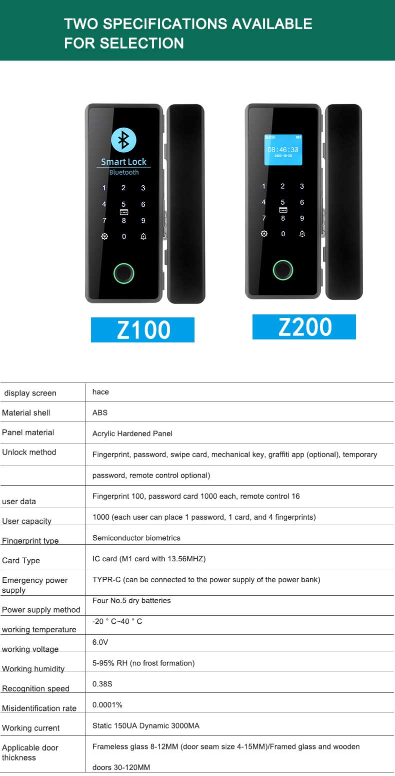 Unlock method Fingerprint,password,swipe card,mechanical key,graffiti app(optional),temporary